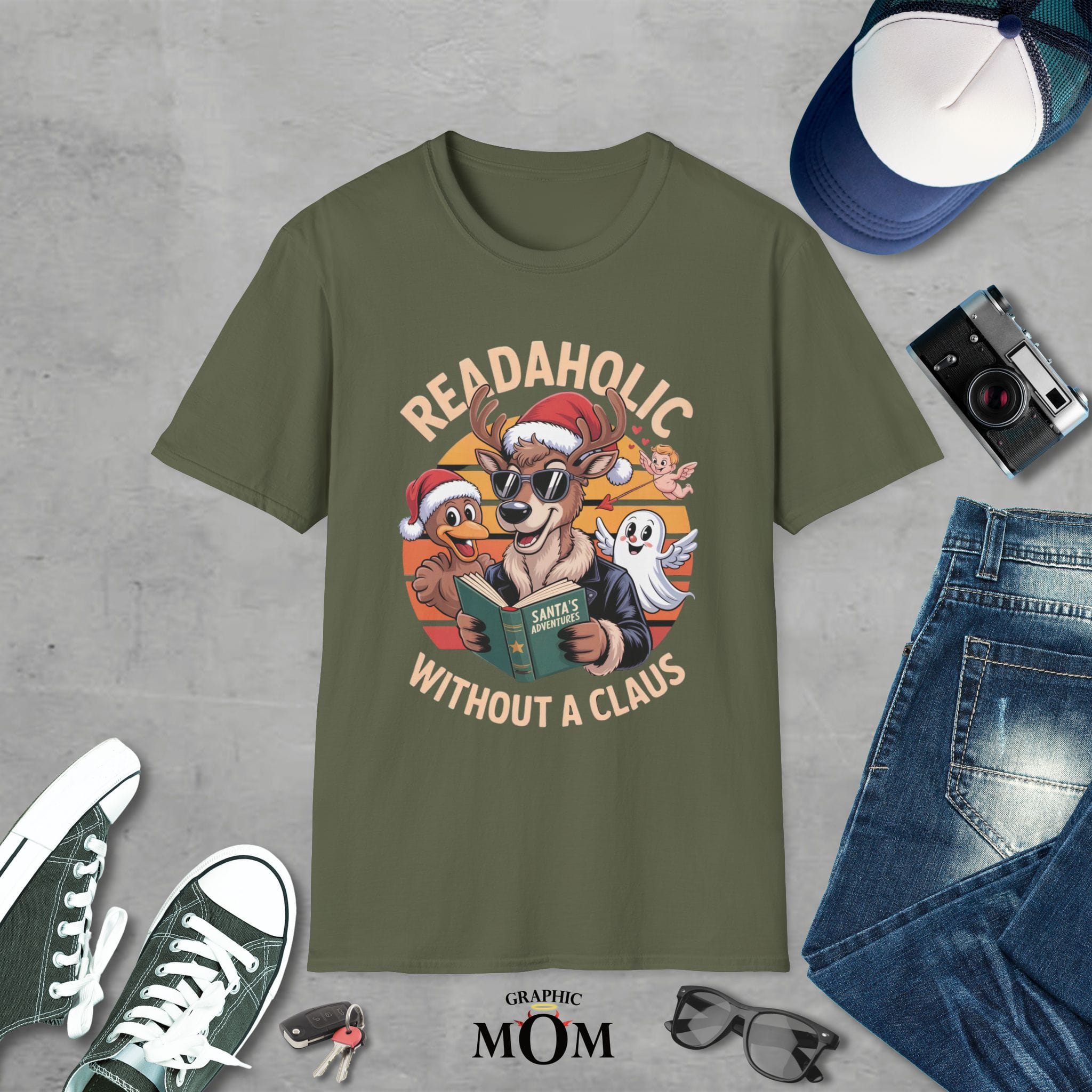 Readaholic Santa Unisex Softstyle T-Shirt, Holiday Gift, Funny Christmas Tee, Book Lover Shirt, Cozy Casual Wear